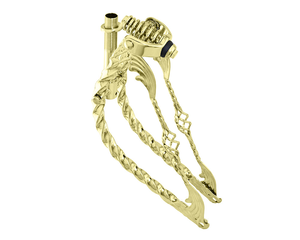 20 Lowrider Bent Square Twisted Spring Fork 1 Inch W/Twisted Wing Cage Bars Gold.