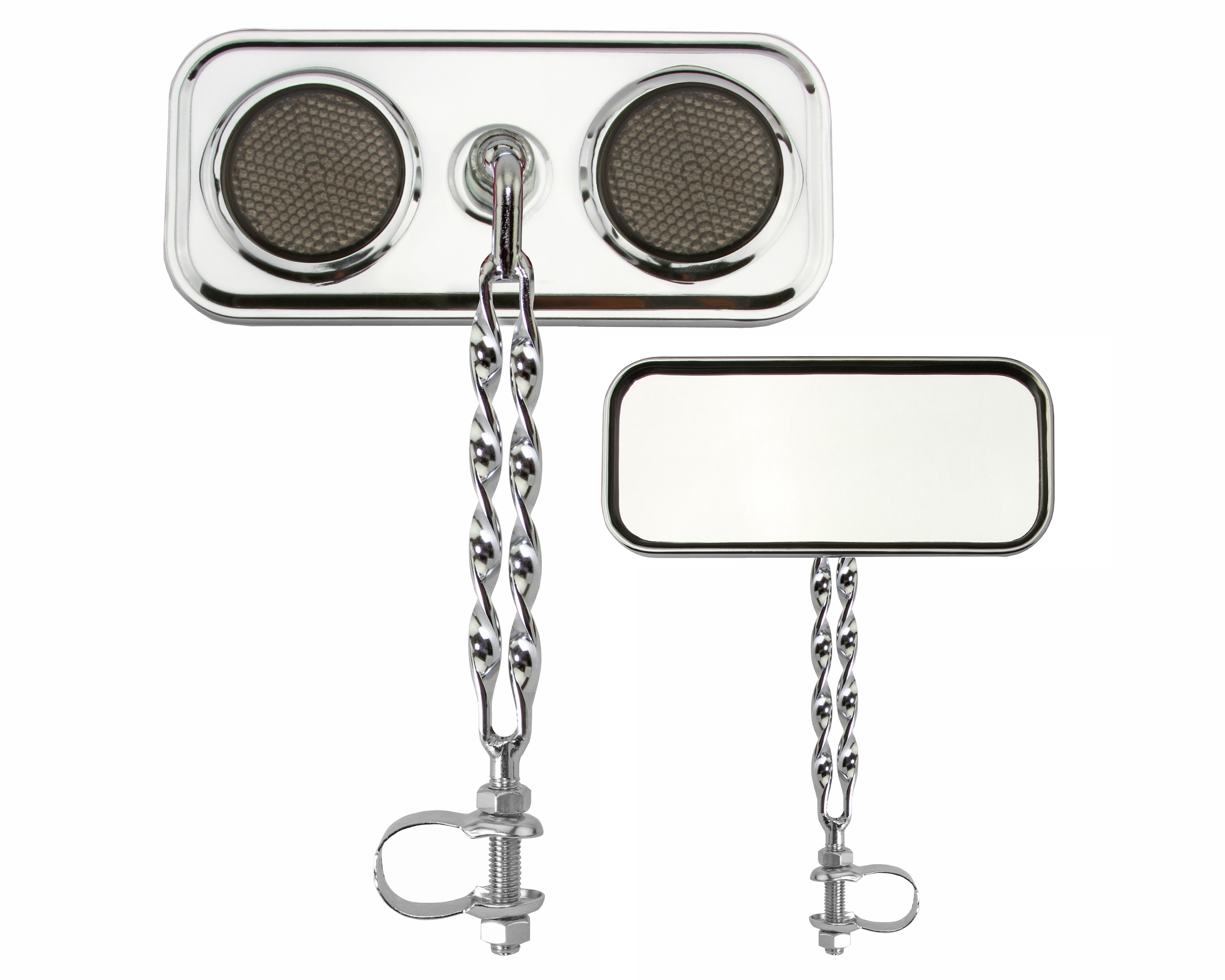 Rectangle Double Flat Twisted Mirror Chrome Black Reflectors.