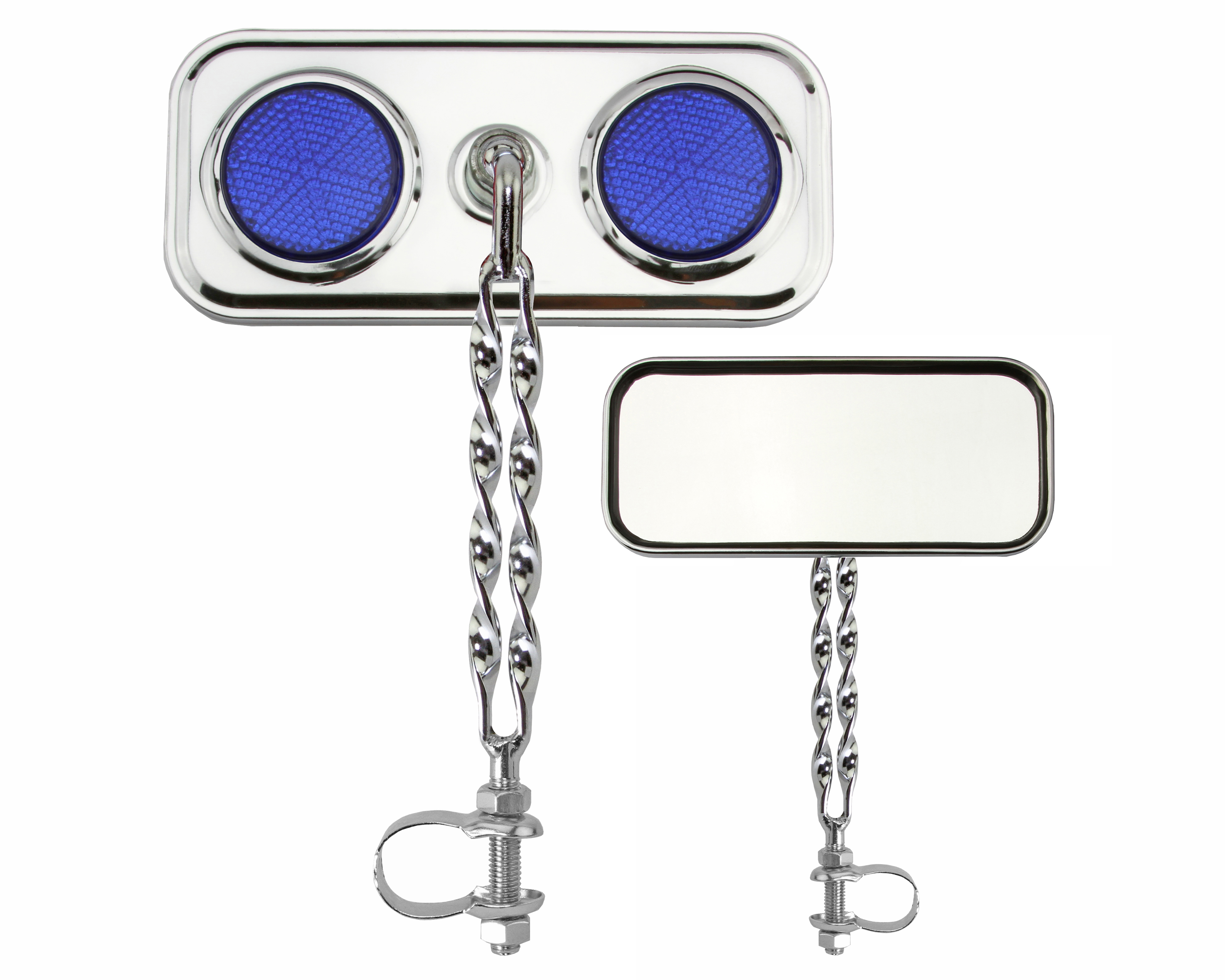Rectangle Double Flat Twisted Mirror Chrome Blue Reflectors.