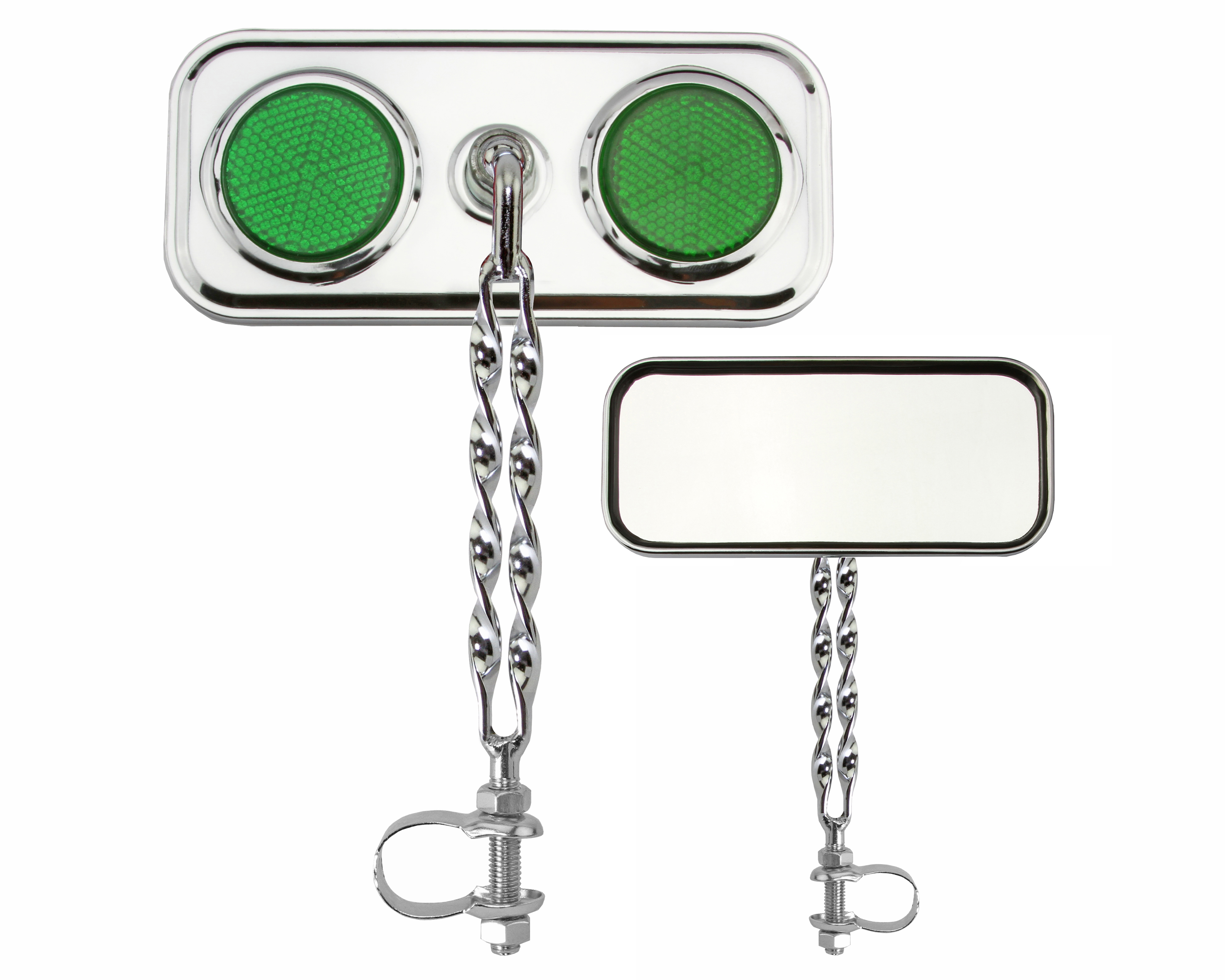 Rectangle Double Flat Twisted Mirror Chrome Green Reflectors.