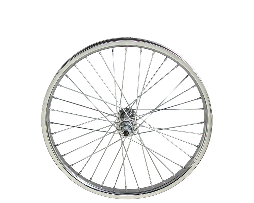 18 Inch X 32mm Steel Front Wheel 28 Spoke 14G Chrome 3/8 Axle Single Wall Chrome.