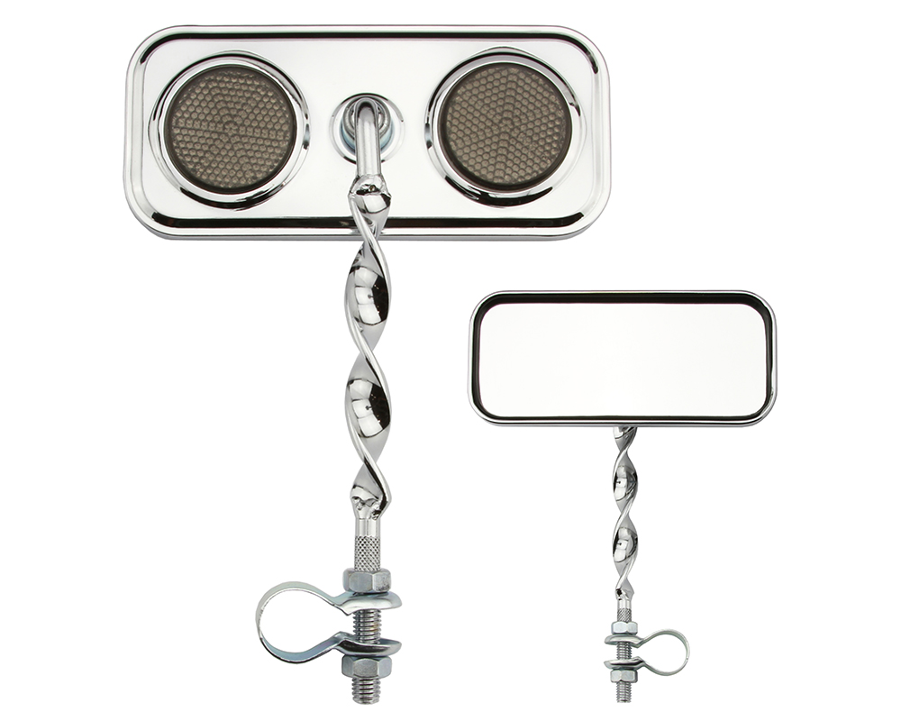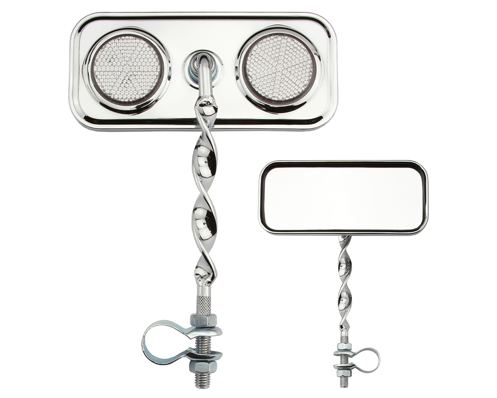 Rectangle Flat Twisted Mirror Chrome Black Reflectors.