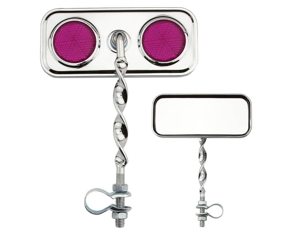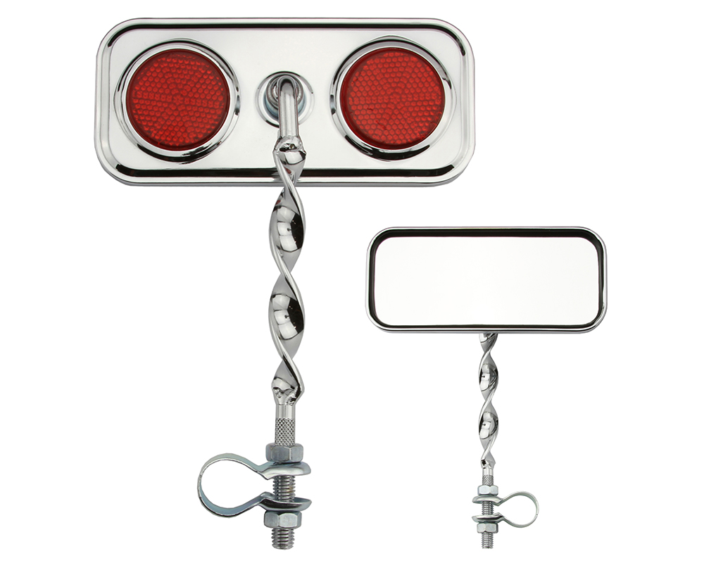 Rectangle Flat Twisted Mirror Chrome Red Reflectors.