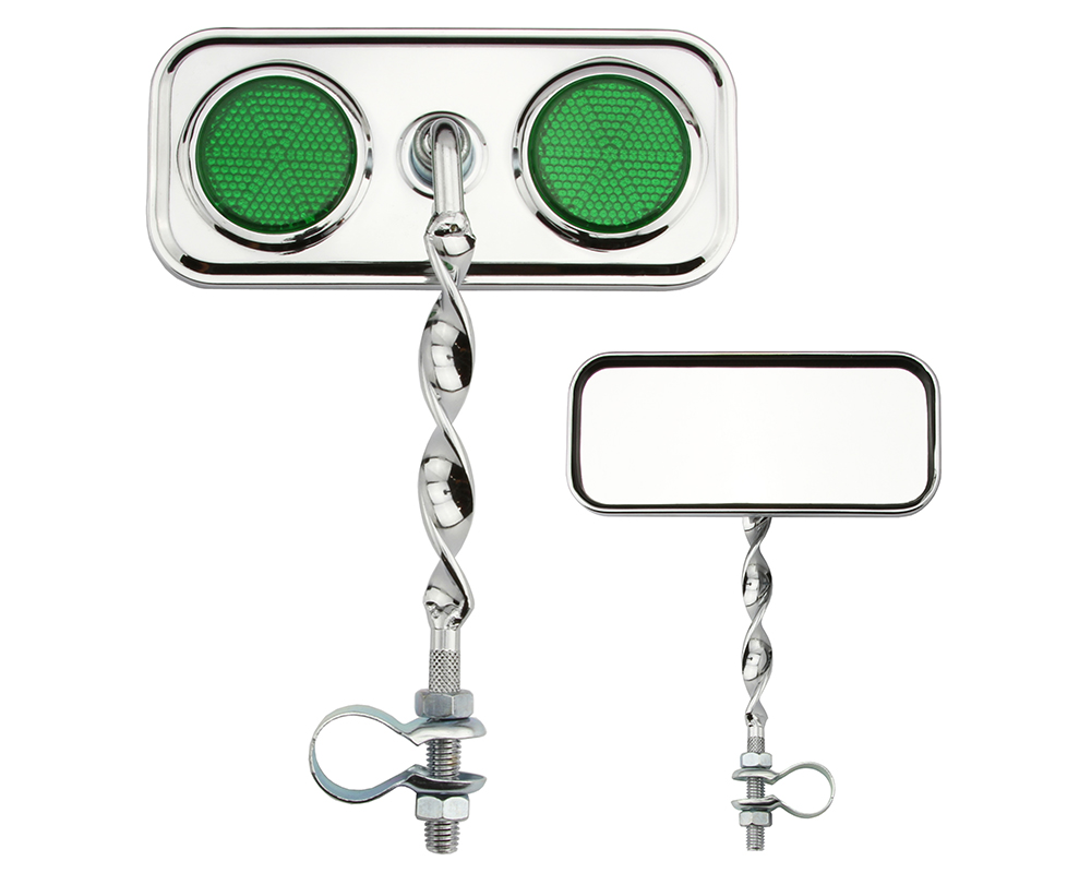 Rectangle Flat Twisted Mirror Chrome Green Reflectors.