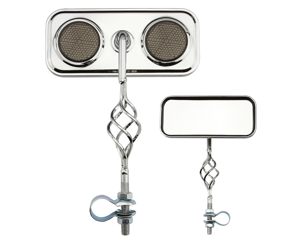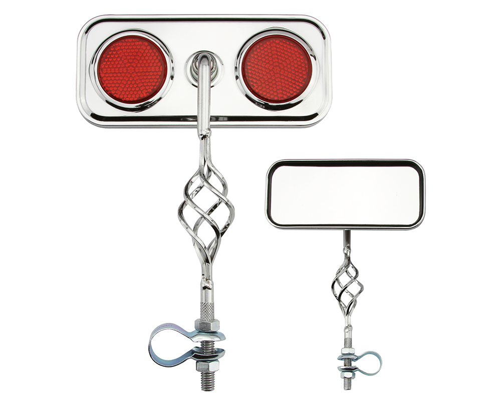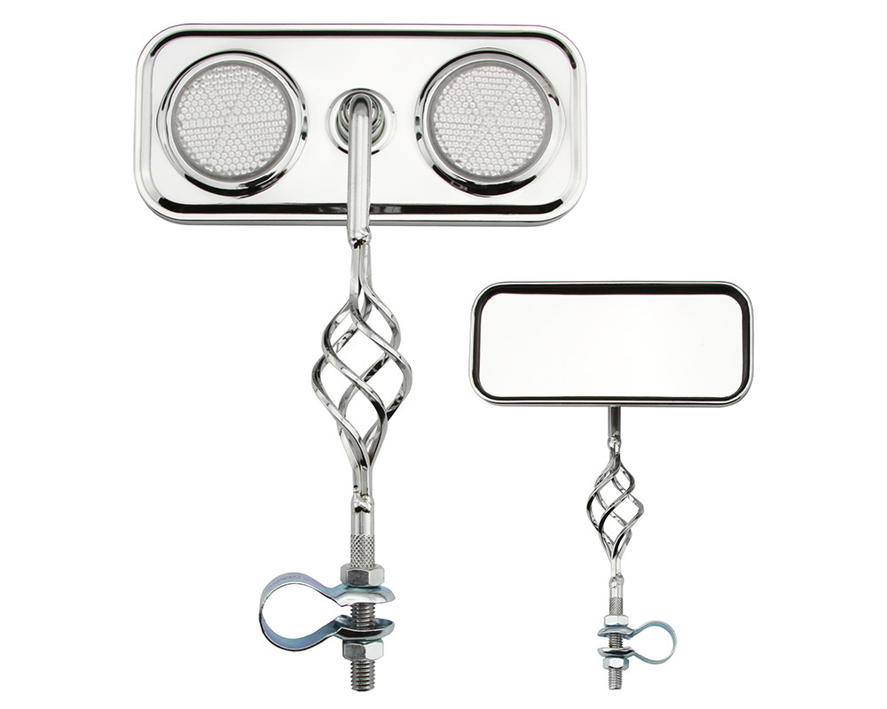 Rectangle Cage Mirror Chrome Red Reflectors.