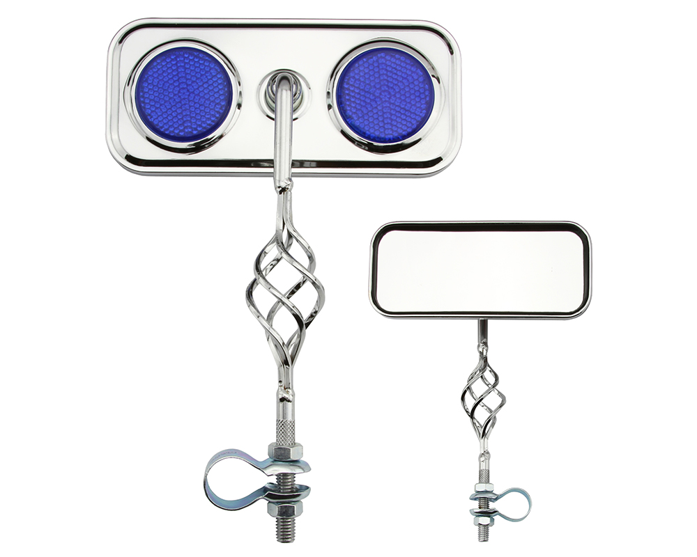 Rectangle Cage Mirror Chrome Blue Reflectors.