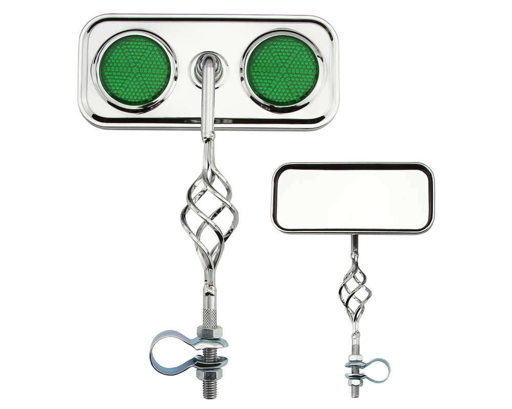 Rectangle Cage Mirror Chrome Green Reflectors.