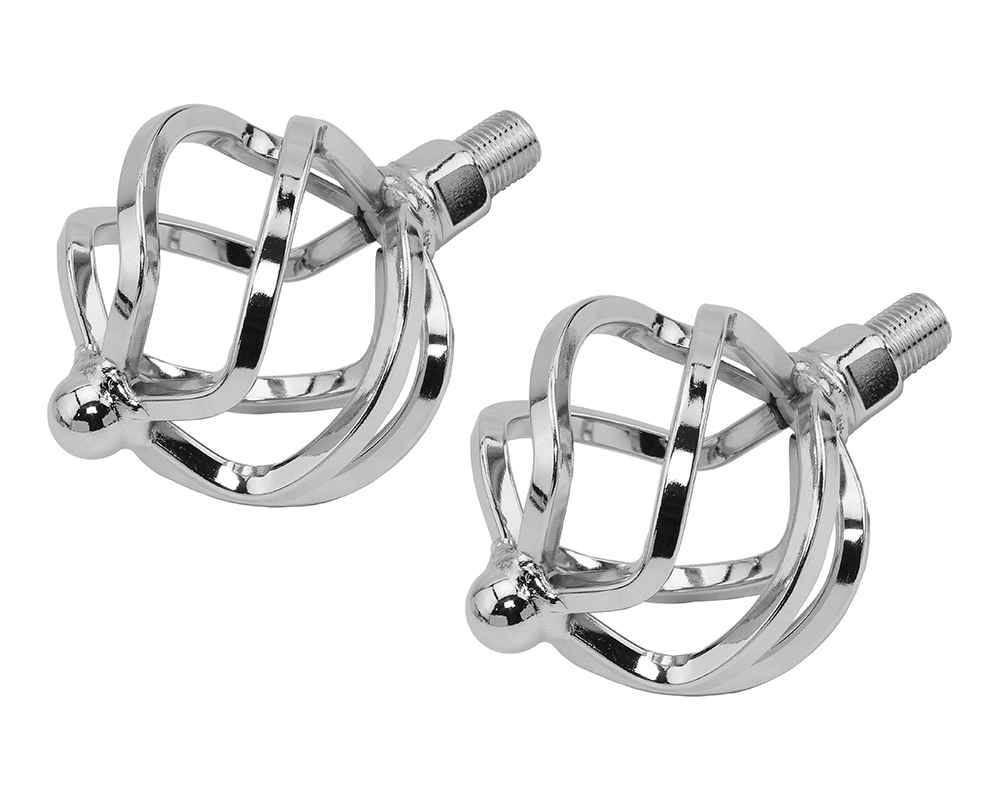 Lowrider Twisted Pedals W/Cage Oval O-580 1/2 Inch Chrome.