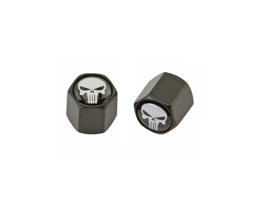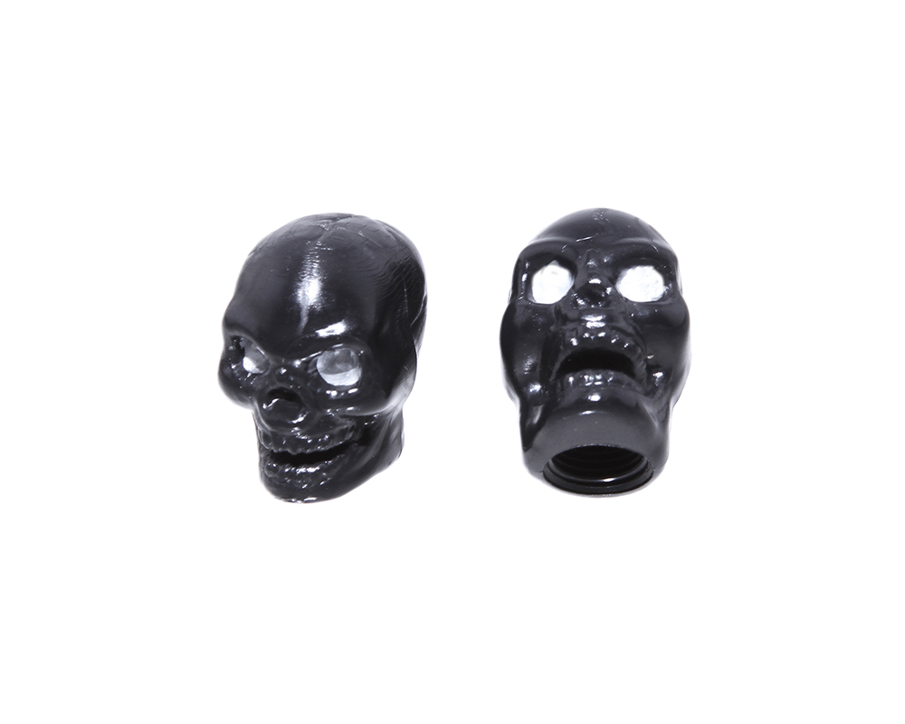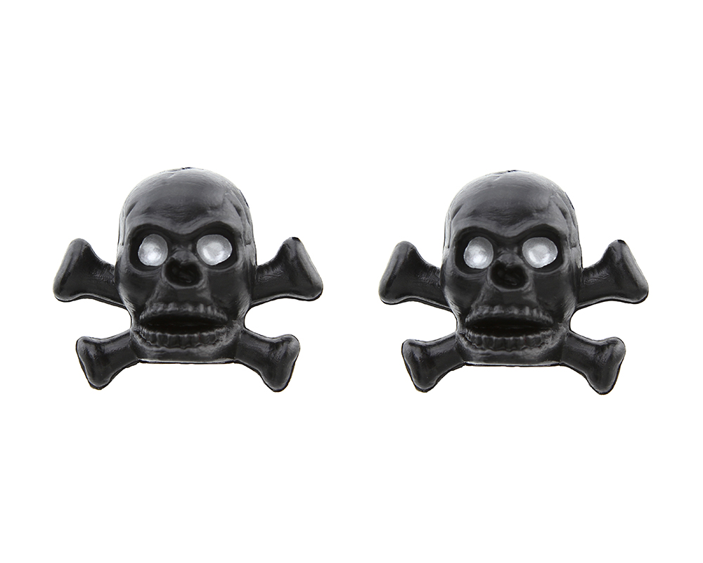Block Shape Skull Valve Caps Black/White Schrader Valve.