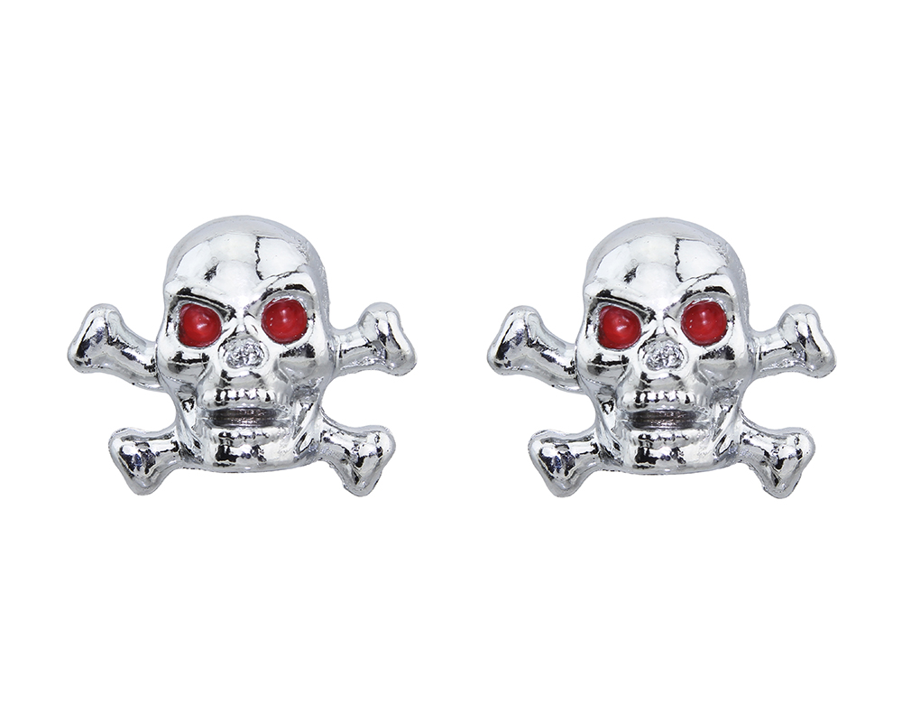 Valve Caps Skull W Bones Chrome Schrader Valve.