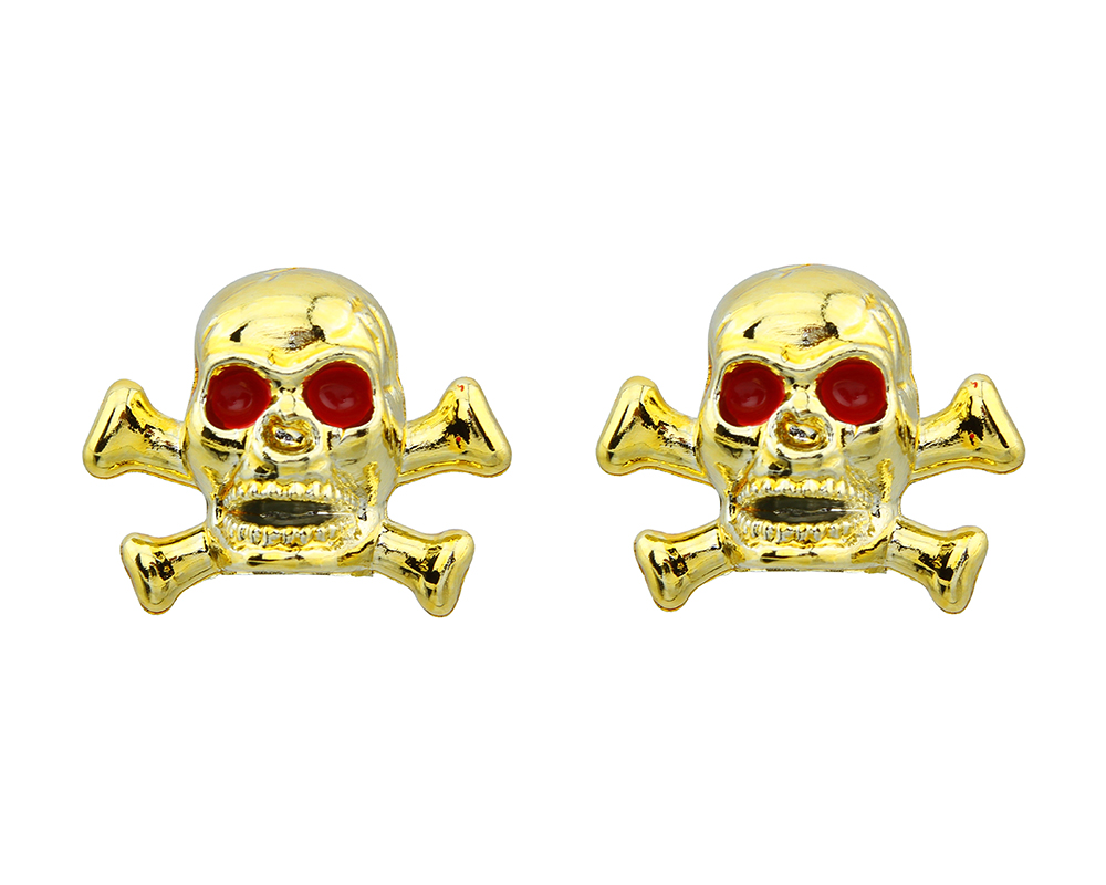 Valve Caps Skull W Bones Gold Schrader Valve.