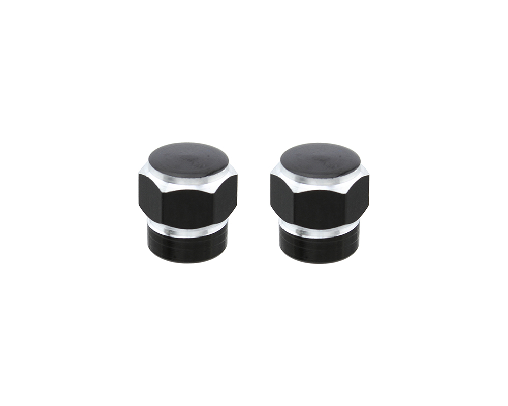 Hex Tow-Tone Valve Caps Black Schrader Valve.