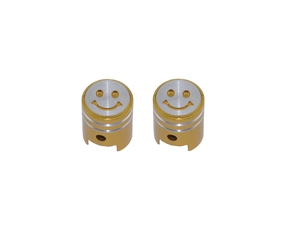 Smile Face Piston Valve Caps Gold Schrader Valve.