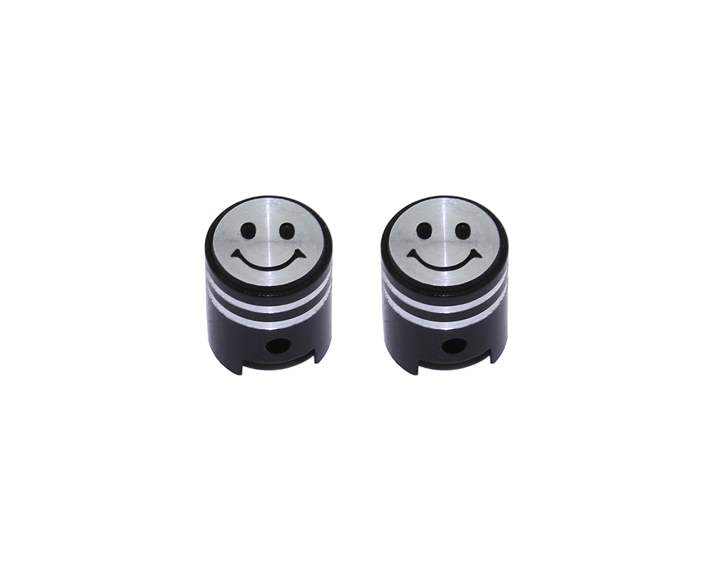 Smile Face Piston Valve Caps Black Schrader Valve.