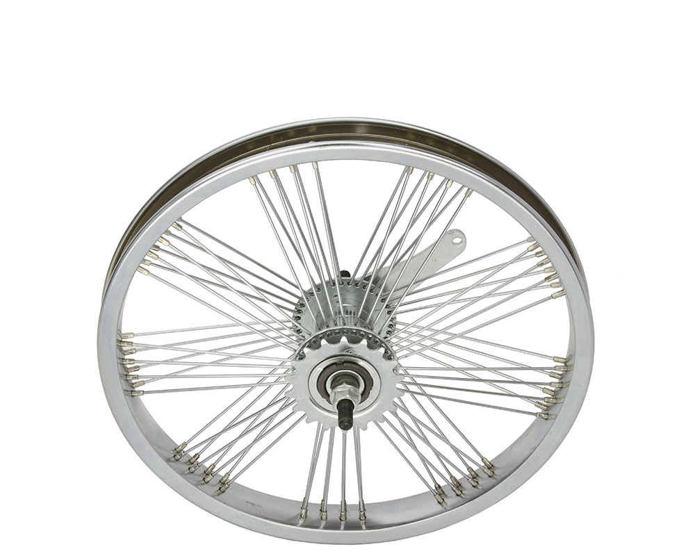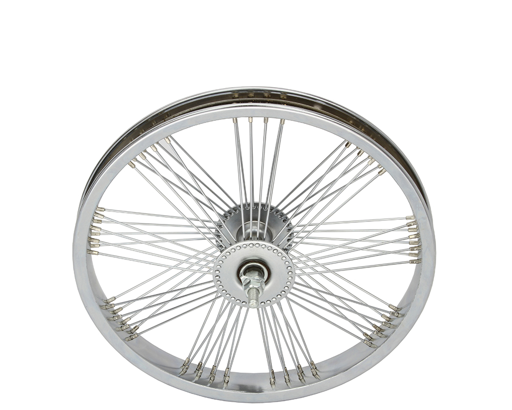 16 Inch X 32mm Fan Steel Front Wheel 72 Spoke 14G Chrome 3/8 Axle Single Wall Chrome.