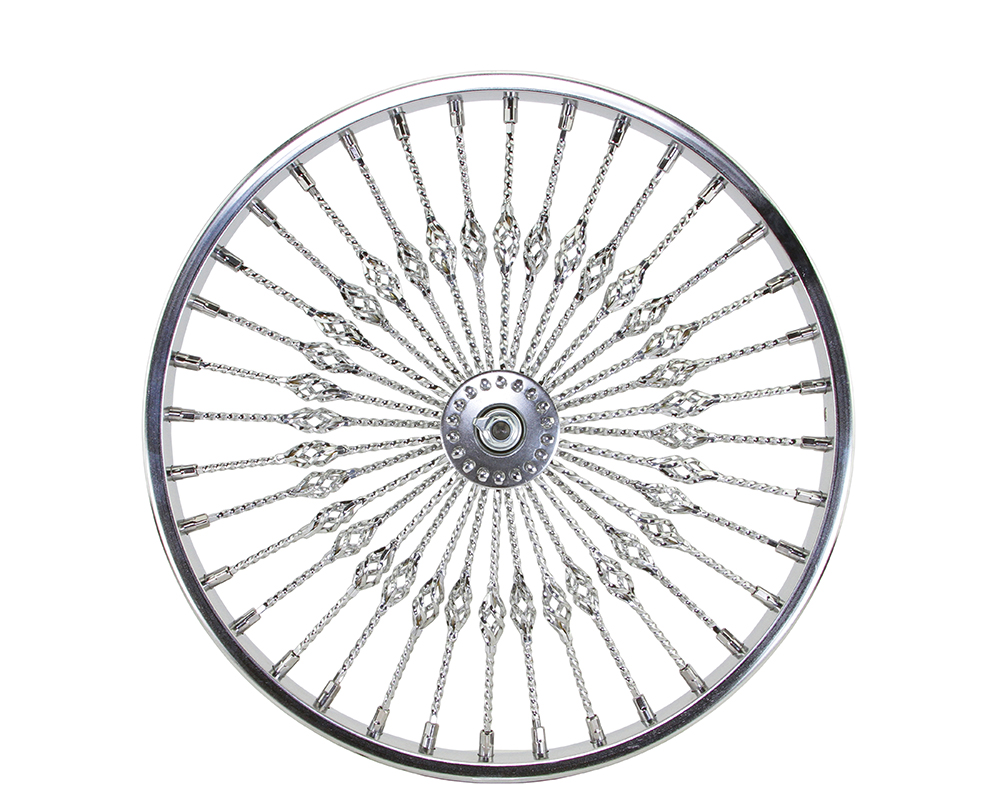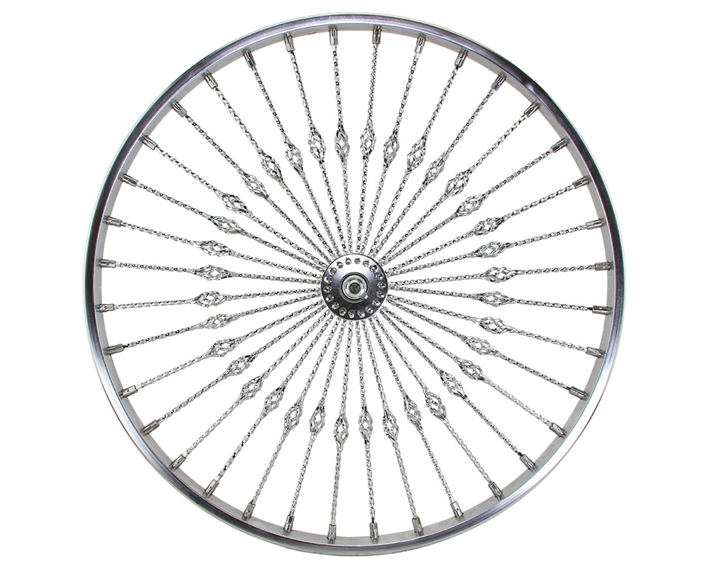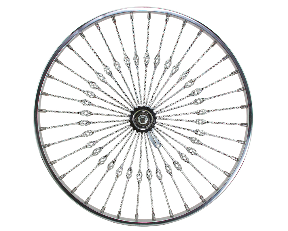 20 Inch x 32mm Steel Front Wheel Twisted Cage 36 Spoke 8GChrome 3/8 Axle Single Wall Chrome.