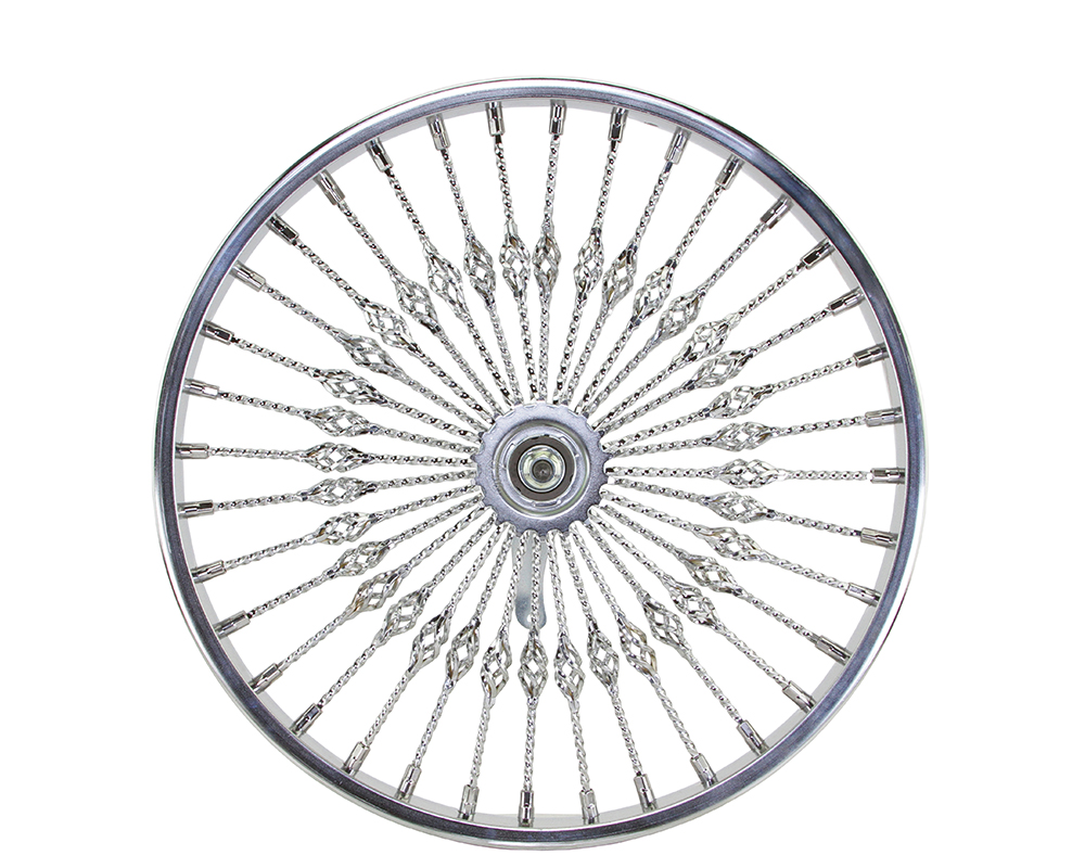 26 Inch x 32mm Steel Front Wheel Twisted Cage 36 Spoke 8G Chrome 3/8 Axle Single Wall Chrome.