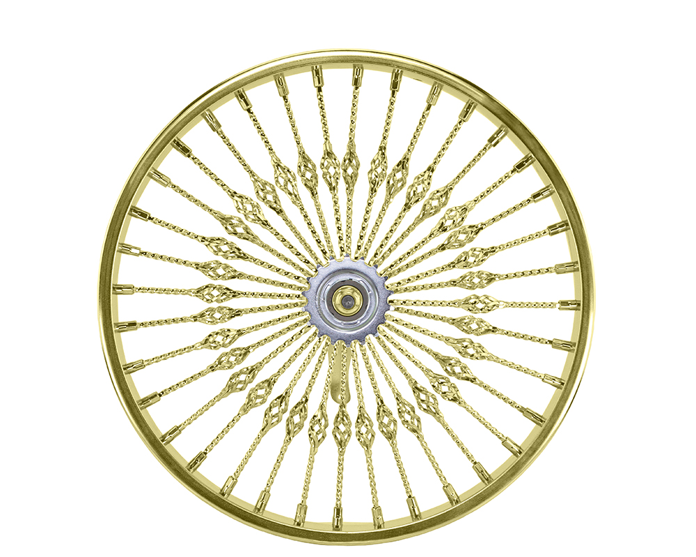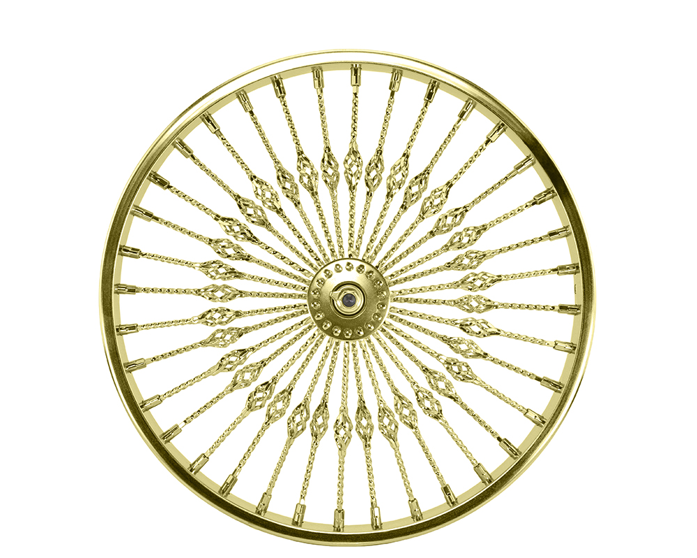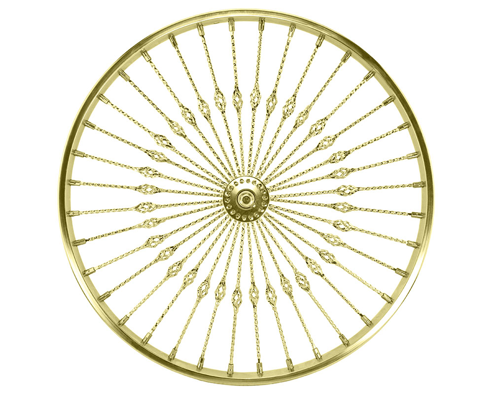 26 Inch x 32mm Steel Front Wheel Twisted Cage 36 Spoke 8G Gold 3/8 Axle Single Wall Gold.