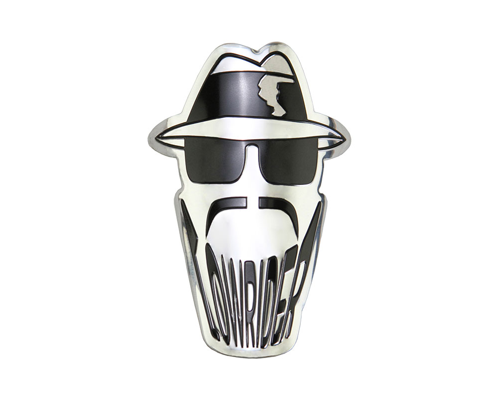 Lowrider Round Silhouette Head Name Plate Chrome/Black.